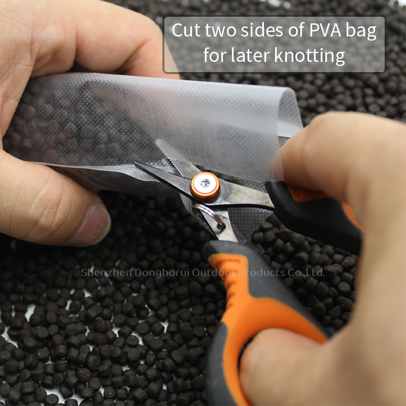 1.Cut two sides of PVA Bag for later knotting