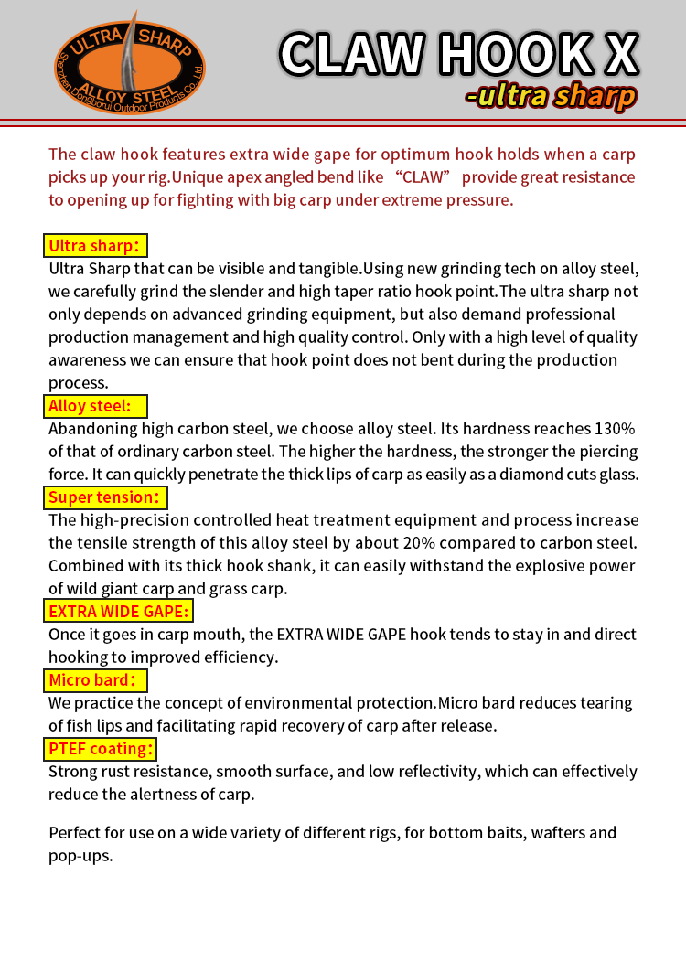 Carp Fishing CLAW HOOK X Alloy Steel PTFE Coating Micro Bard Extra Wide Gape Hook