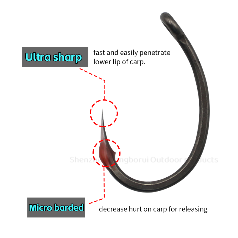 Strong shank and feature a micro barb which won't hinder penetration, but once in, will ensure that the hook stays in place.